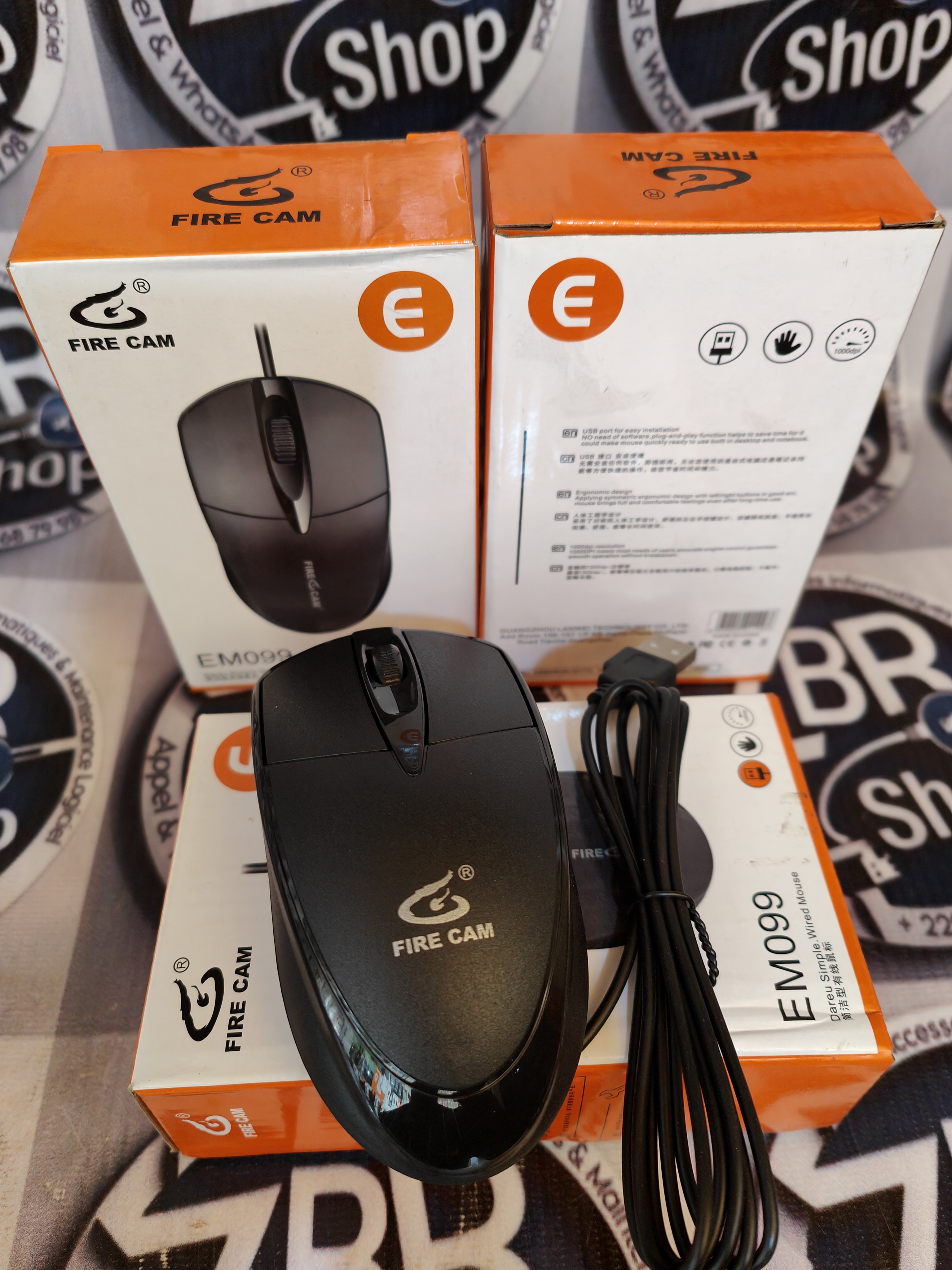 Souris filaire FIRE CAM modèle EM090 USB. Design ergonomique noir, précision optimale, plug-and-play, compatible PC/Mac. Idéale bureautique, gaming et usage quotidien.